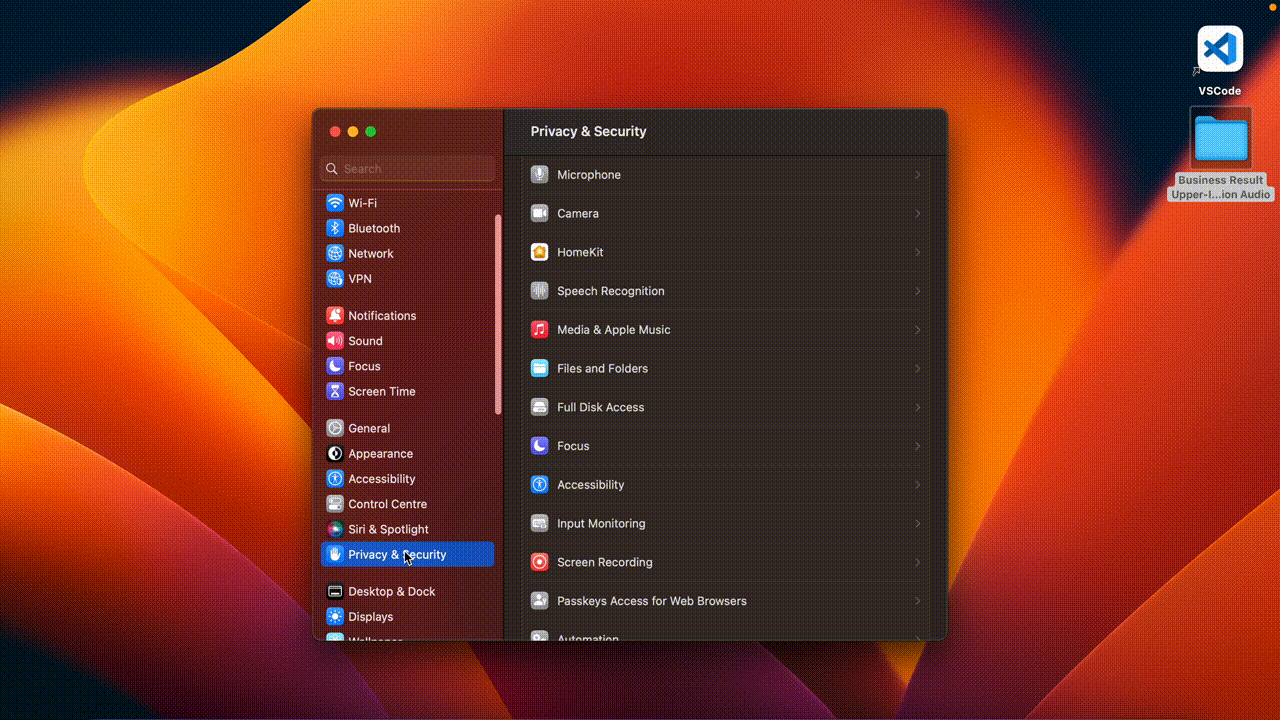1. In the upper left corner, select the Apple menu -> "System Settings", go to the "Privacy & Security" section.