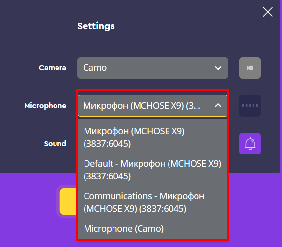 First of all, make sure that the microphone/camera works in other applications, for example, Skype. You can check the microphone/camera operation in the browser on this site.
