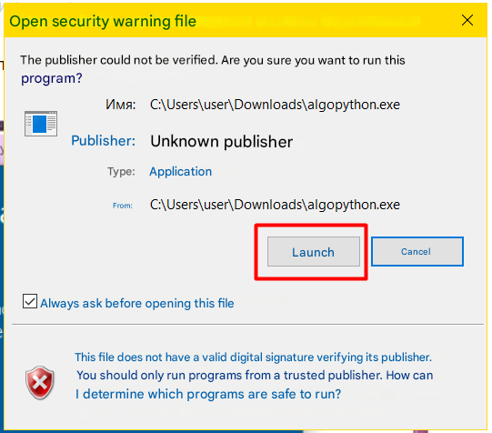 After installation, add the folder: C:\Users\username\AppData\Local\Programs\Algoritmika (replace username with your Windows account name).