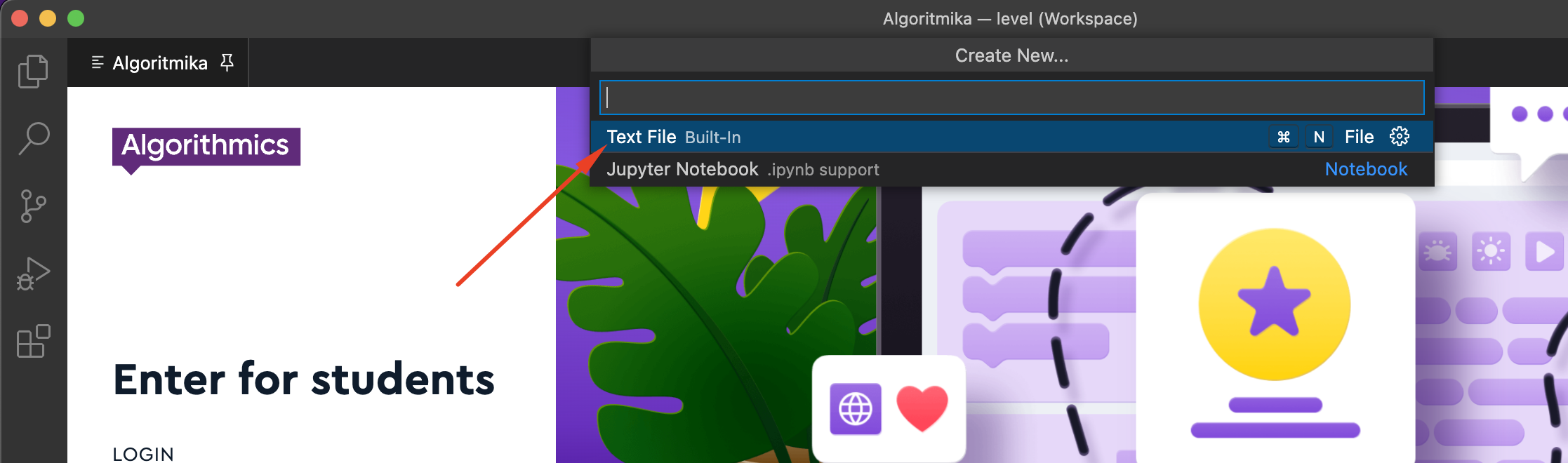 After this, Algo VS Code can be opened from the desktop shortcut or via Start → Algoritmika → VSCode.