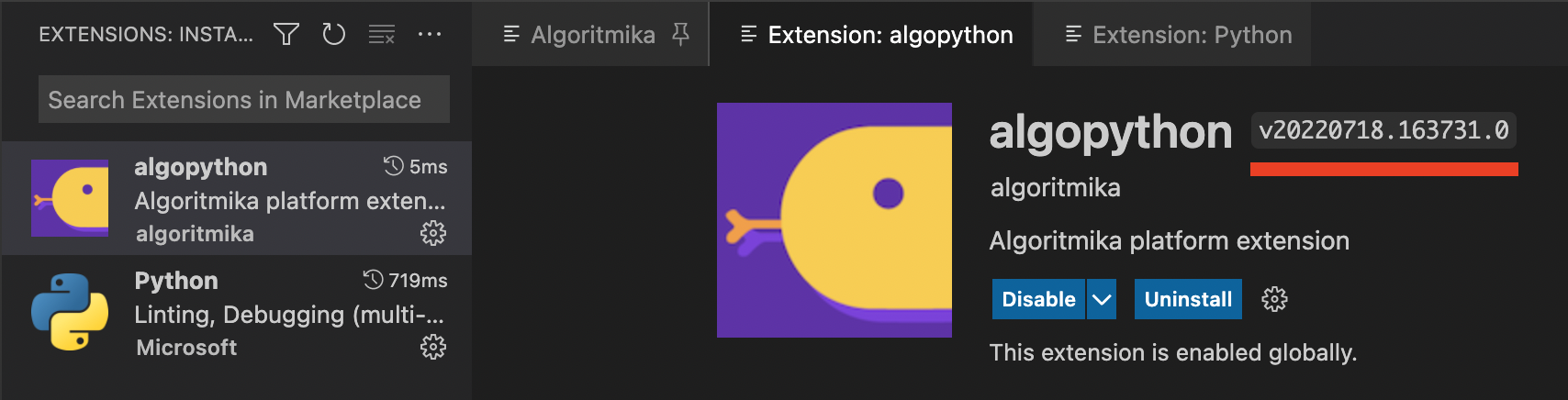 Verify that the algopython extension version is v20250624.103906.0 or higher.