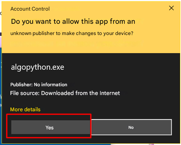 If Algo VS Code was previously installed, you must perform a clean reinstallation before installing the new version. This prevents conflicts between old and new files.