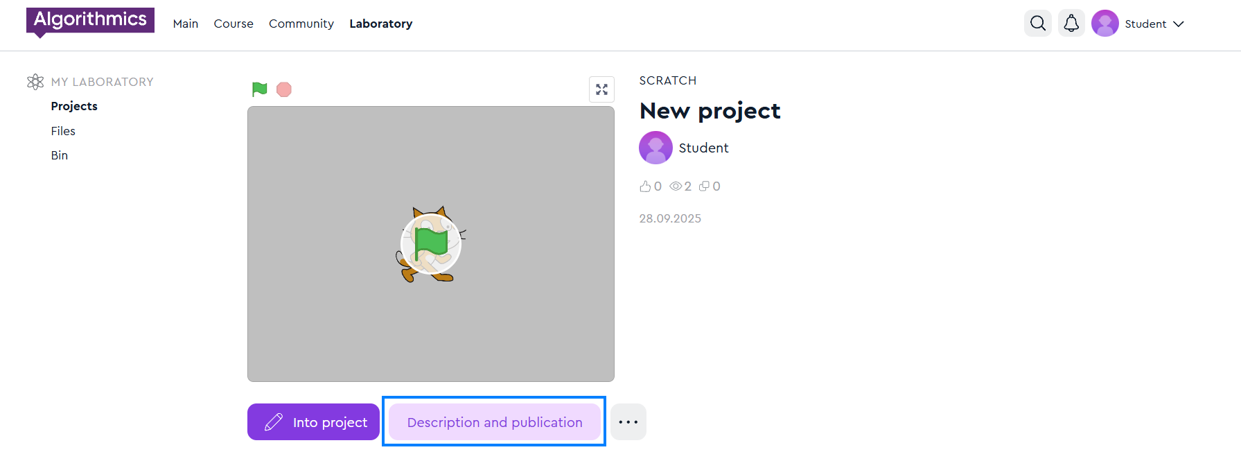 1. Go to the categories Laboratory -> Projects. Select the project you want to share.
