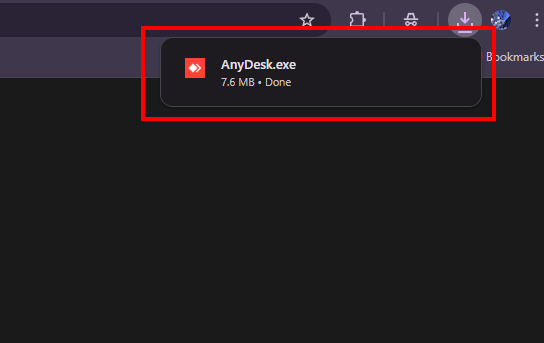 Once the AnyDesk download is complete, open it by clicking on the pop-up window.
