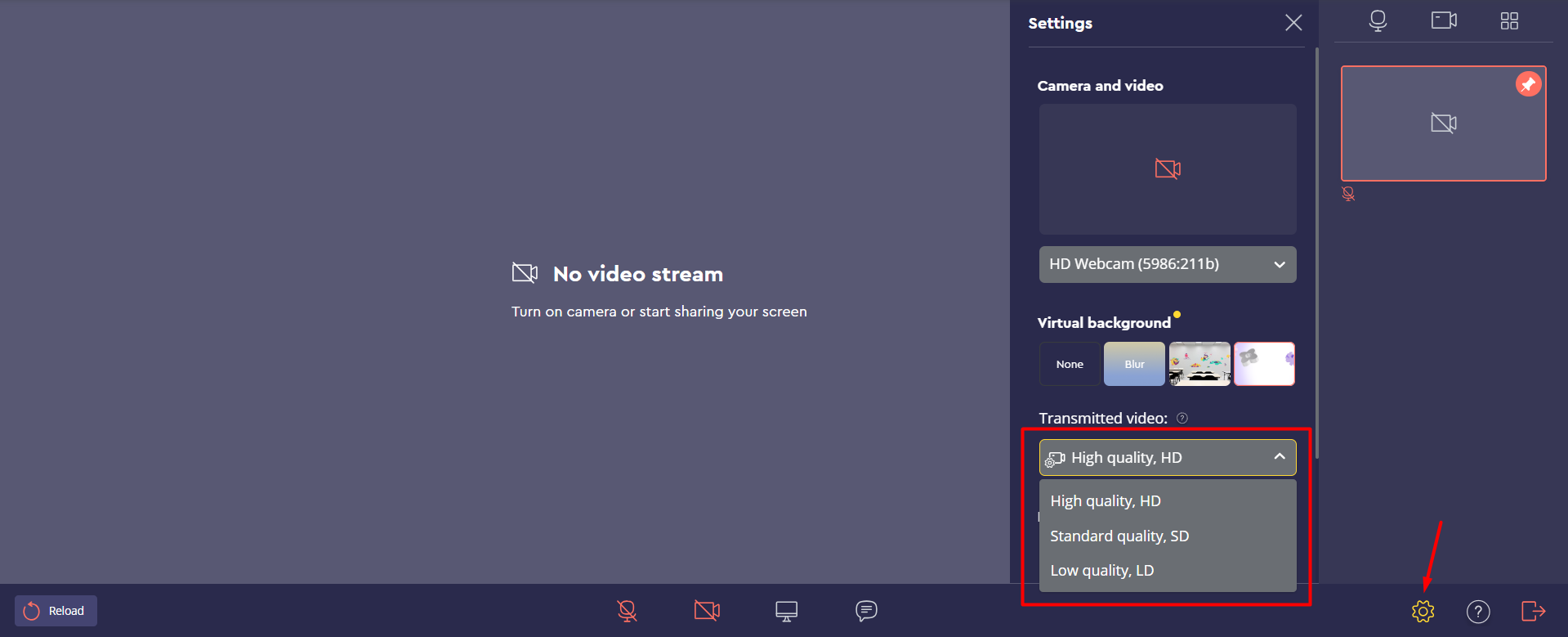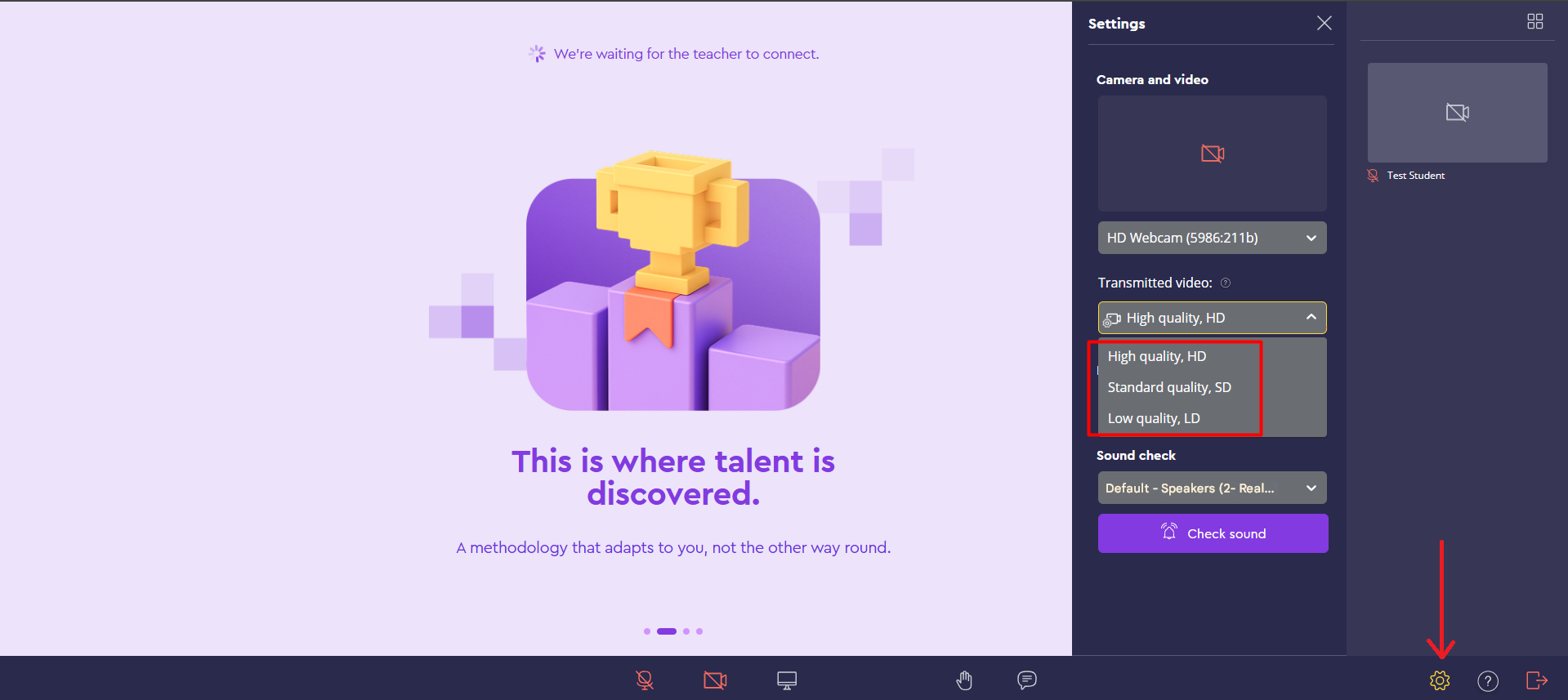 If the online classroom lags or you experience issues with audio, video, or screen sharing, lower the video quality settings: