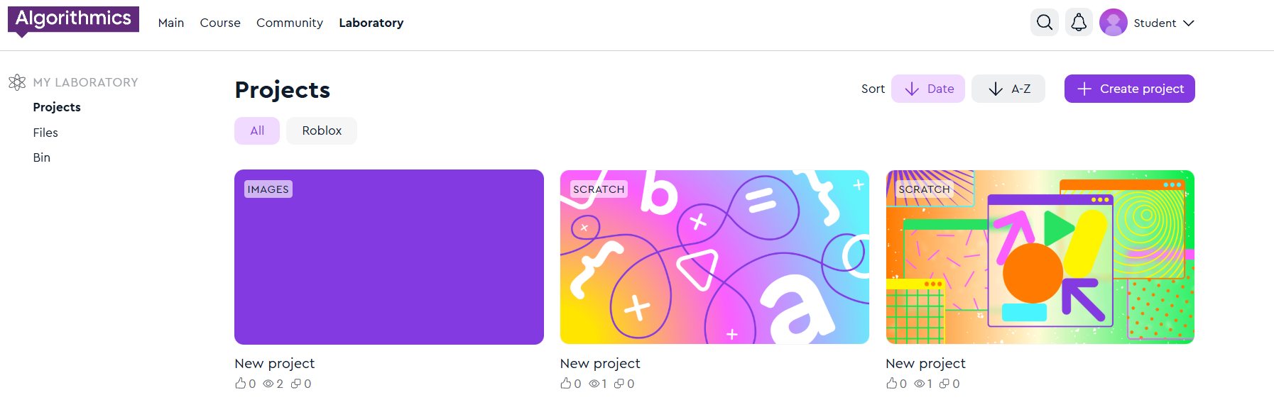 Ve a las categorías Laboratorio -> Proyectos. Selecciona el proyecto que deseas compartir.