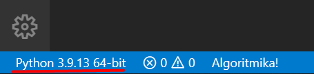 En la esquina inferior izquierda de la ventana del programa debería aparecer algo como:Python 3.9.13 64-bit