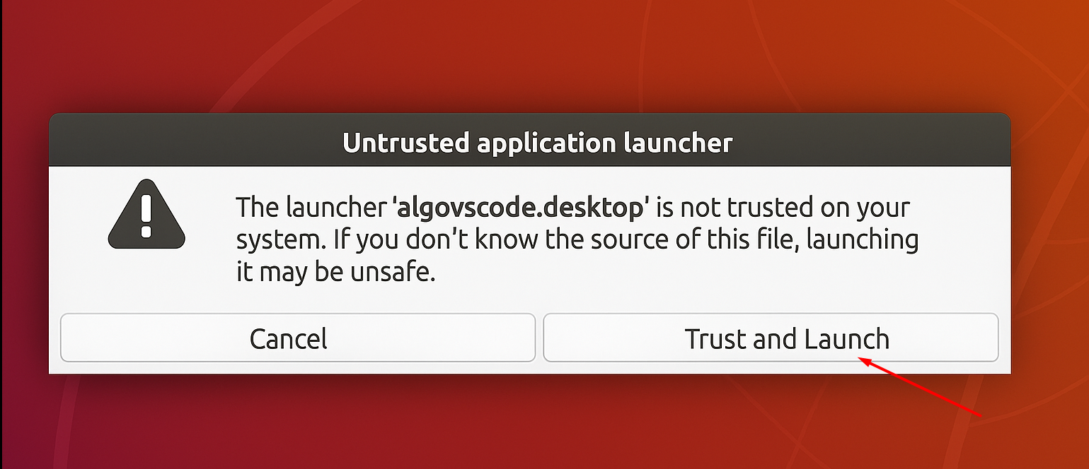 En la ventana de advertencia, haga clic en “Trust and Launch” (Este mensaje no volverá a aparecer en futuros lanzamientos).