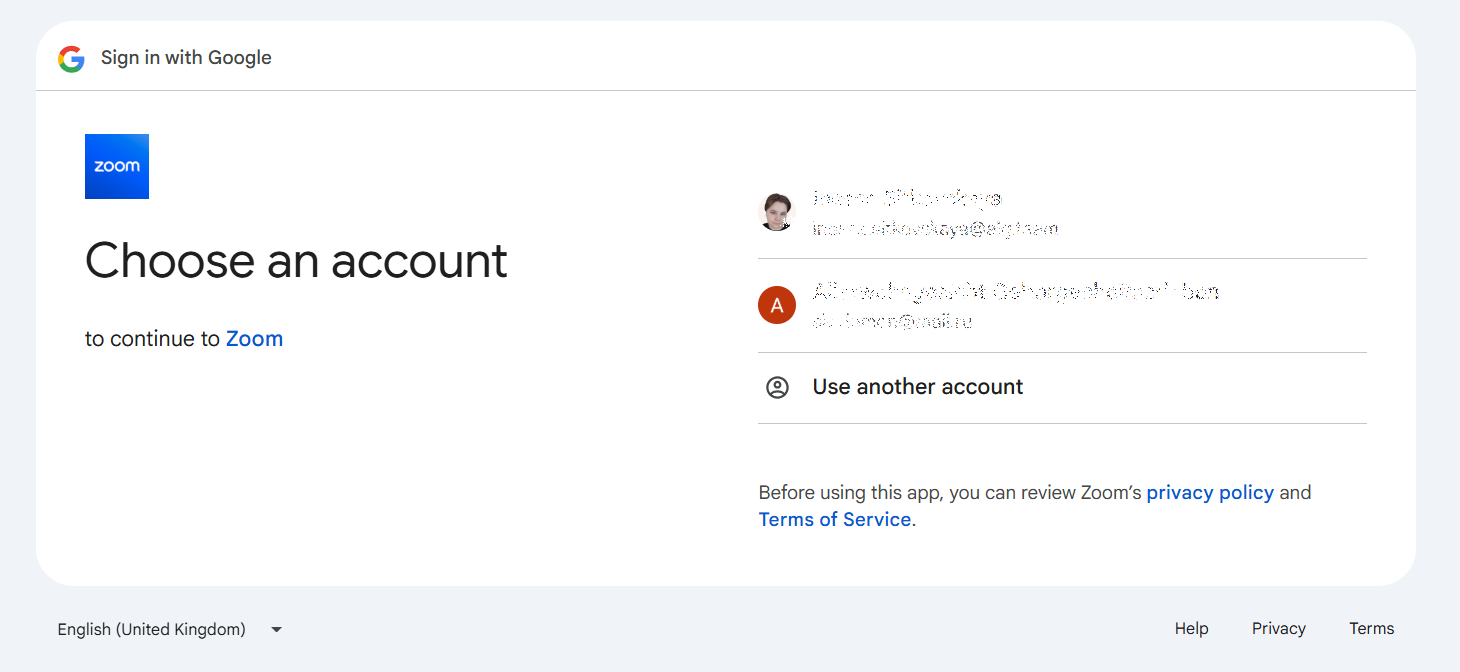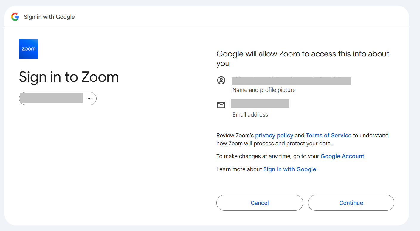 En la ventana emergente, selecciona cualquier cuenta de Google que planees usar para Zoom.