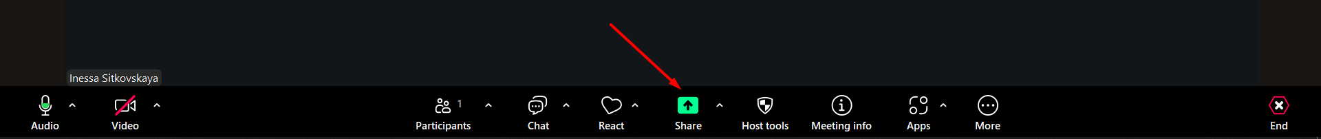 El botón Compartir pantalla te permite iniciar la compartición de pantalla.