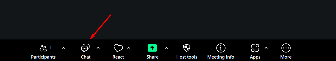 Al hacer clic en el botón Chat, puedes abrir el panel de chat en el lado derecho de la ventana de Zoom.